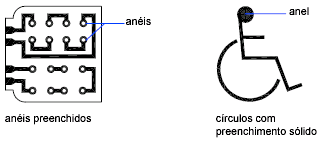 Anéis são circunferências preenchidas ou círculos com preenchimento sólido que, na verdade, são polilinhas fechadas com espessura.