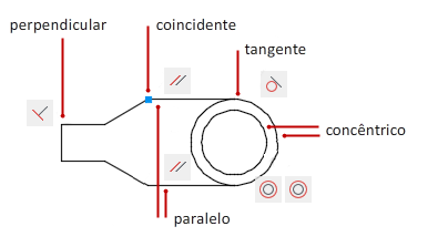 Por exemplo, você pode especificar que uma linha deve ser sempre perpendicular à outra, que um arco e um círculo deve ser sempre concêntrico ou que uma linha deve ser sempre tangente a um arco.