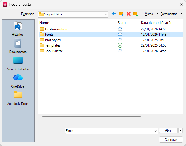 - Navegue até uma pasta ou uma localização de arquivo no projeto da Autodesk e clique em Abrir.