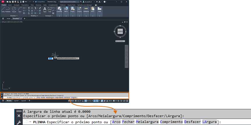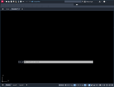 A janela de comandos encaixada tem a mesma largura da janela do aplicativo. Ela é exibida em uma posição fixa acima ou abaixo da área de desenho.
