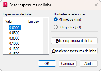 Especifica as unidades nas quais exibir a lista de espessuras de linha.