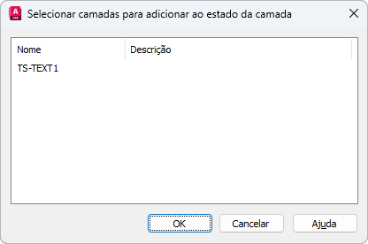 Exibe o nome e a descrição de camadas que não foram adicionadas ao estado da camada. Selecione as camadas que deseja adicionar e clique em OK.