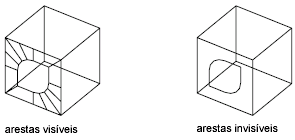 Controla quais arestas de uma face 3D ficarão visíveis, o que permite uma modelagem precisa dos objetos com orifícios. Inserir i ou invisível antes do primeiro ponto de uma aresta torna a aresta invisível.