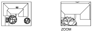 Altere a ampliação de uma vista ativando e desativando o zoom, um procedimento semelhante à ampliação e diminuição do zoom de uma câmera. Utilizar o ZOOM não altera o tamanho absoluto de objetos no desenho. Ele somente altera a ampliação da vista.