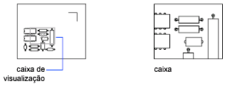 Efetua o pan e zoom utilizando uma caixa de visualização retangular. A caixa de visualização representa sua vista, a qual pode ser diminuída ou aumentada e é possível mover em trono do desenho. O posicionamento e dimensionamento da caixa de visualização, efetua o pan ou zoom para preencher a viewport com a vista dentro da caixa de visualização. Não está disponível na projeção em perspectiva.