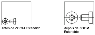 Ajusta a ampliação da área de desenho para acomodar as extensões de todos os objetos visíveis no desenho ou auxílios visuais, como limites de grade (o comando DEFLIMITE), o que for maior.