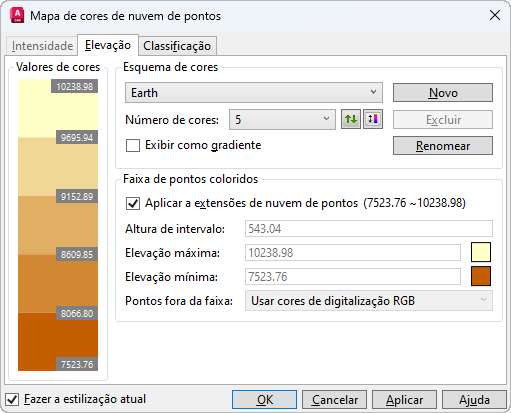 Edita as configurações de esquema de cores para estilizações de nuvem de pontos de Elevação.