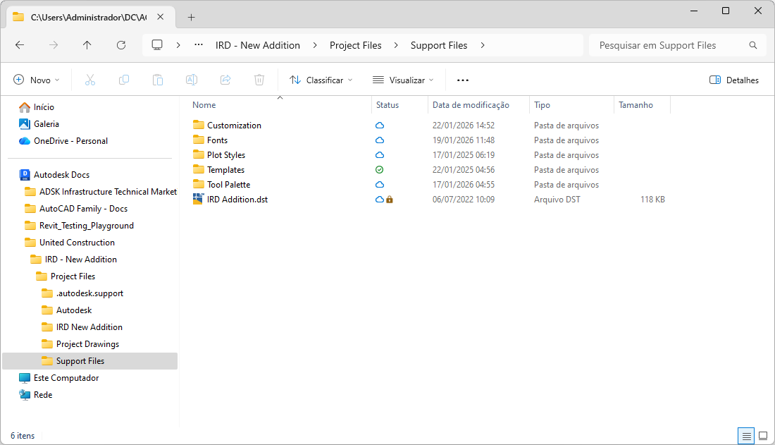 Os arquivos de suporte adicionados às pastas locais serão sincronizados com o projeto da Autodesk usando o Desktop Connector.