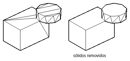 Você pode remover arestas ou vértices redundantes que compartilham a mesma definição de superfície ou de vértice. Essa operação mescla faces adjacentes e exclui todas as arestas redundantes e as arestas não utilizadas.