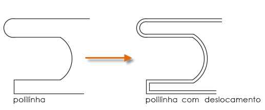 Por exemplo, se você deslocar um círculo ou um arco, um círculo ou arco maior ou menor é criado, dependendo de qual lado for especificado para o deslocamento. Se você desloca uma polilinha, o resultado é uma polilinha que está em paralelo com a original.