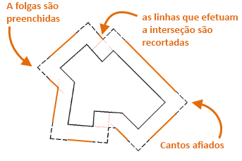 A variável de sistema OFFSETGAPTYPE controla se os cantos estendidos são nítidos, preenchidos ou chanfrados.
