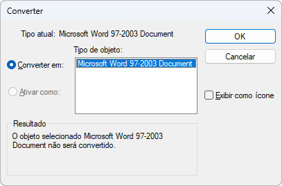 Exibe o tipo de objeto que está sendo convertido ou ativado.
