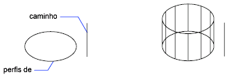 Especifica o caminho de extrusão com base em um objeto selecionado. O caminho é movido para o centróide do perfil. O perfil do objeto selecionado sofre extrusão ao longo do caminho escolhido para criar sólidos ou superfícies.