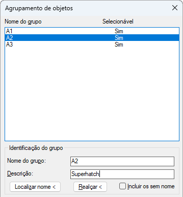 3) Selecione o grupo. Observe que "super-hachura" aparece no campo de descrição dos grupos criados pelo comando SUPERHATCH.