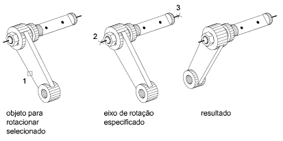 A direção positiva do eixo vai do ponto inicial até o ponto final e a rotação segue a regra da mão direita.