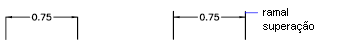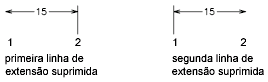 Suprime a exibição das linhas de extensão. Linha de extensão 1 suprime a primeira linha de extensão; Linha de extensão 2 suprime a segunda linha de extensão. (variáveis de sistema DIMSE1 e DIMSE2)