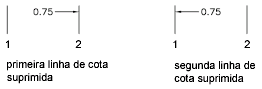 Omite a exibição de linhas de cota. Linha de cota 1 suprime a primeira linha de cota; Linha de cota 2 suprime a segunda linha de cota. (variáveis de sistema DIMSD1 e DIMSD2)