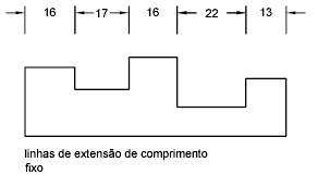 Define o comprimento total das linhas de extensão iniciando a partir da linha de cota em direção a cota origem. (variável de sistema DIMFXL)