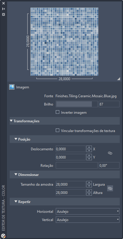 As configurações de textura controlam diversos aspectos de texturas que são aplicadas aos materiais, incluindo posição, escala, tamanho e repetição. Algumas configurações são comuns a mais de uma textura. Outras são únicas para o tipo de textura.