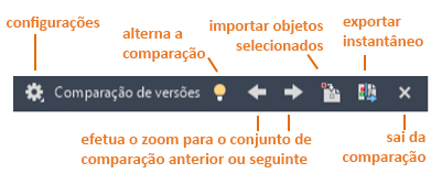 A barra de ferramentas Comparação de versões ajuda a executar uma variedade de funções: