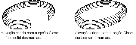Fecha e abre um sólido ou superfície. Ao usar esta opção, as seções transversais devem formar um padrão na forma de toroide, para que a superfície ou sólido elevado possa formar um tubo fechado. (variável de sistema LOFTPARAM)