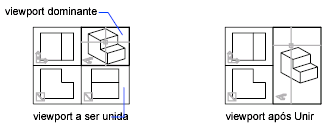 As duas viewports de modelo precisam compartilhar a aresta comum do mesmo comprimento. A viewport resultante herda a vista da view­port dominante.