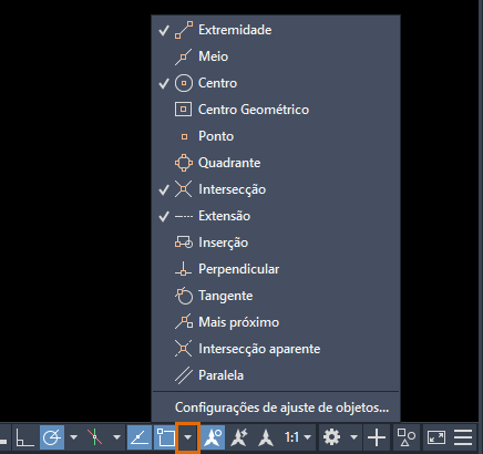 Clique na seta suspensa de itens na barra de status para acessar outras opções para as configurações.