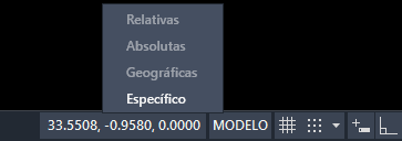 A opção Geográfico só ficará disponível se o arquivo de desenho contiver os dados de localização geográfica.