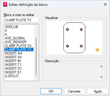 Exibe a descrição da definição de bloco selecionada.