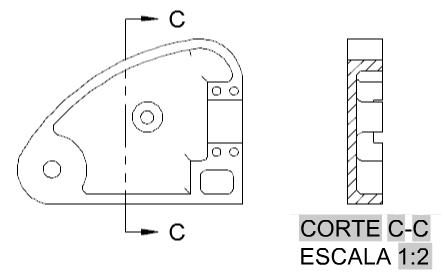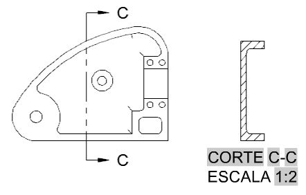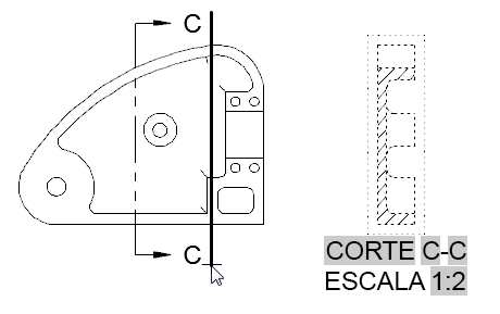 Especifica a legenda para a linha de corte e a vista em corte resultante.