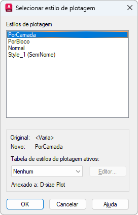 Exibe os estilos de plotagem disponíveis, incluindo o estilo de plotagem padrão, NORMAL. Um estilo de plotagem é um conjunto de configurações de propriedade utilizadas na plotagem.