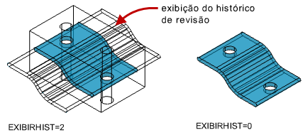 Você pode remover o histórico de um sólido composto selecionado ao alterar sua configuração de Histórico para Nenhum ou inserindo o comando REPRLIMITE. Após o histórico ter sido removido, não mais é possível selecionar e modificar os componentes originais removidos do sólido. É possível reiniciar a retenção do histórico para o sólido ao alterar sua configuração Histórico de volta para Gravar.
