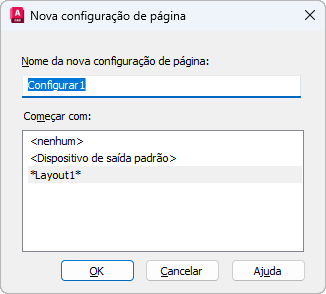 Especifica uma configuração de página para usar inicialmente para Nova configuração de página. Quando você clicar em OK, a caixa de diálogo Configuração da página é exibida com os ajustes da configuração de página selecionada, que pode ser alterada conforme necessário.