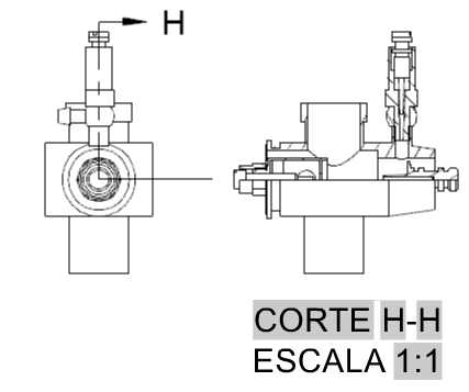 Uma vista em meio corte é gerada com a colocação do plano de corte através de uma parte do comprimento do objeto que está sendo cortado.