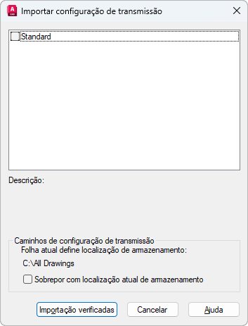 Exibe uma lista de configurações de transmissão Verifica aqueles que deseja importar para o conjunto de folhas atual.