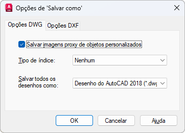 Se você estiver salvando um desenho parcialmente aberto que ainda não contenha índices de camada e espaciais, essa opção estará desativada.