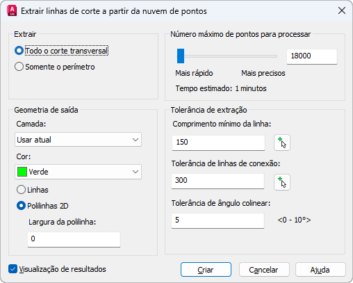 Caixa de diálogo Extrair linha de corte da nuvem de pontos