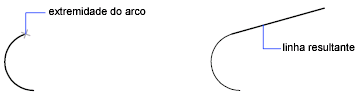 Imediatamente após concluir um arco, poderá iniciar uma linha tangente ao arco no ponto final. Você precisa especificar apenas o comprimento da linha.