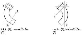 Usando diferentes opções, é possível especificar primeiro o ponto inicial ou primeiro o ponto central.