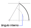 A distância entre este ponto inicial e o centro determina o raio. A outra extremidade do vértice é determinada ao especificar um ângulo incluído que usa o centro do arco como o vértice.