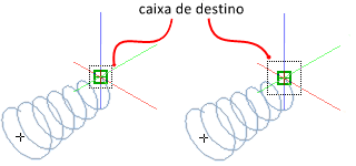 Os snaps a objeto são ativados quando a caixa de destino do snap a objeto passa sobre uma localização de objeto como uma intersecção ou o ponto final. Dependendo da complexidade do desenho, é possível aumentar ou diminuir a área que é influenciada pelo snap a objeto.