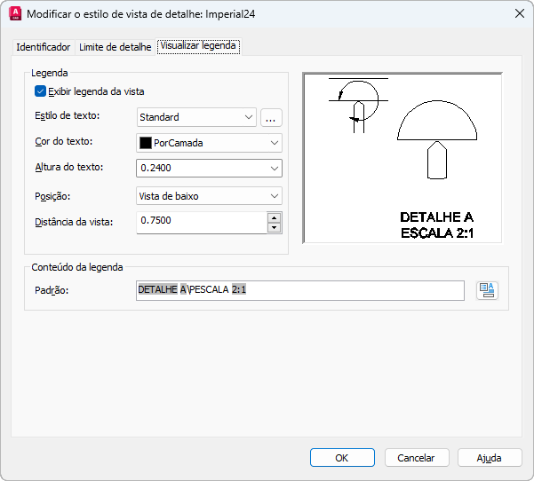 Especifica o estilo de texto a ser utilizado na legenda de vista de detalhe.