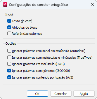 Especifica as opções de texto que serão verificadas em seu desenho.