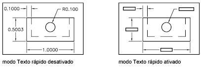 Quando o modo Texto Rápido é ativado, somente uma moldura retangular que identifica o texto é exibida ou plotada.