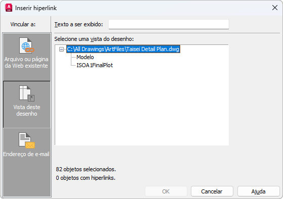 Abre a caixa de diálogo Selecionar local no documento, na qual é possível selecionar uma localização nomeada do desenho para vinculação.