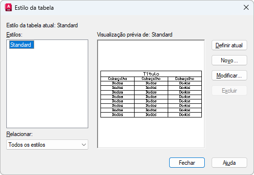 Exclui o estilo de tabela selecionado na lista Estilos. Um estilo em uso no desenho não pode ser excluído.