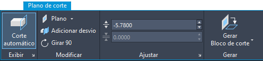 Ao selecionar uma linha de corte/seção, a guia contextual Plano de corte é exibida na faixa de opções.