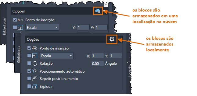Dica: É possível criar “desenhos de biblioteca de blocos” que armazenam todas as definições de bloco relacionadas. Se você usar esse método, escolha a opção Explodir na paleta ao inserir o desenho de biblioteca de blocos para impedir que o desenho seja exibido ou listado na área de visualização.