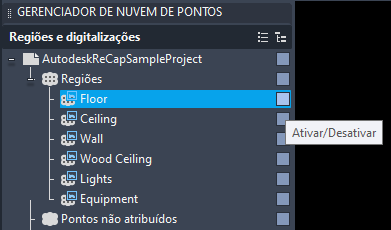Clique no ícone ativado/desativado para ativar ou desativar a visibilidade da digitalização ou da região.