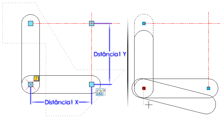 Uma ação de esticar aplicada em um parâmetro de ponto move e estica todos os objetos selecionados em qualquer distância especificada.